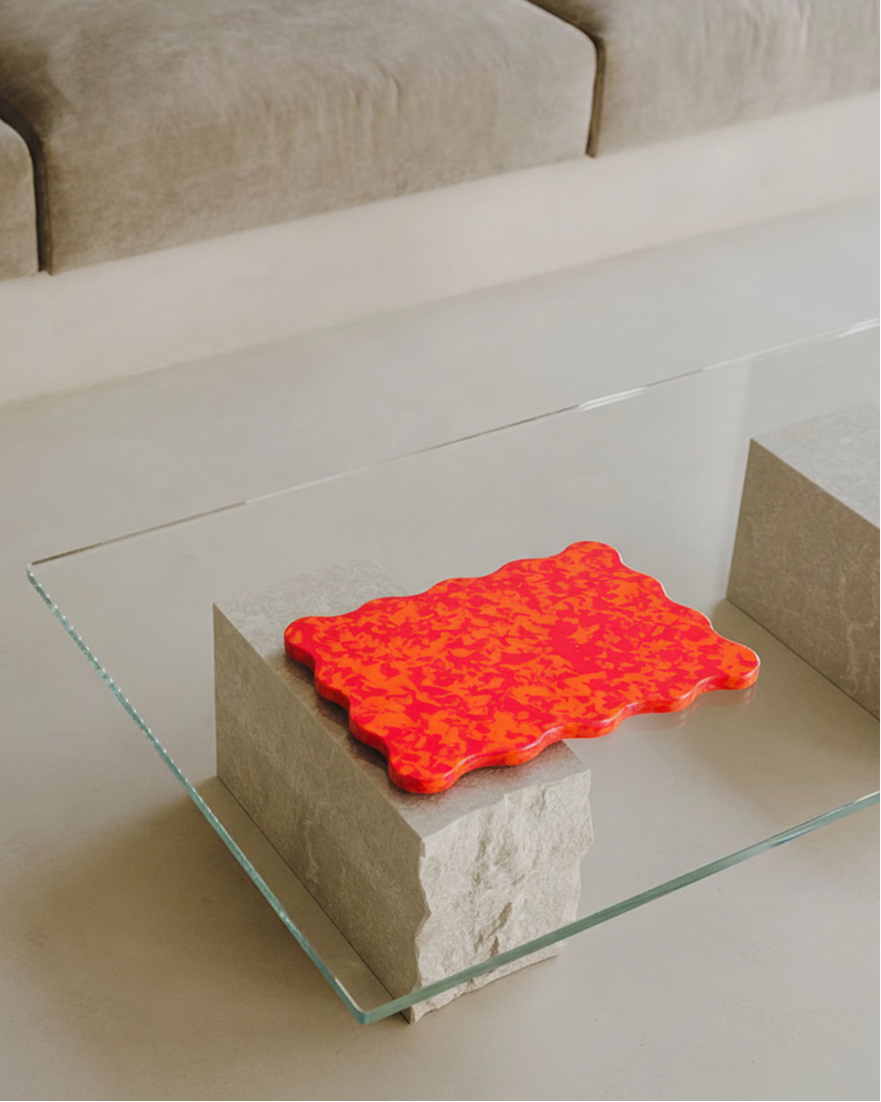 A sculptural, scallop-edged chopping board that transforms prep into display, crafted from entirely recycled plastic and designed to blur the line between utility and art.